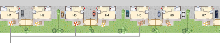 Doppelhäuser Haus 1, Haus 3 und Haus 5 .