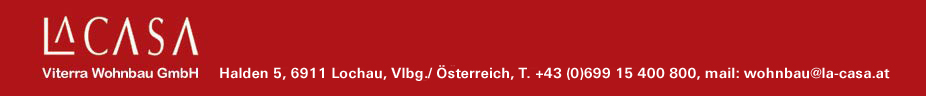 Copyright 2005. LA CASA Viterra Wohnbau GmbH, Halden 5, 6911 Lochau,Vlbg./Österreich, Tel.: +43 (0) 699 15 400 800, wohnbau@la-casa.at